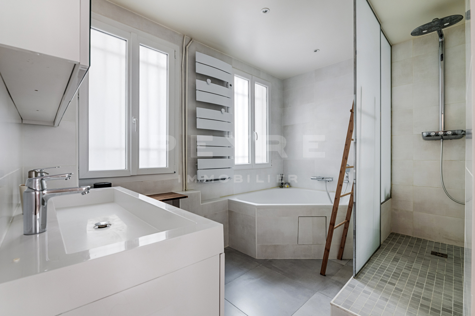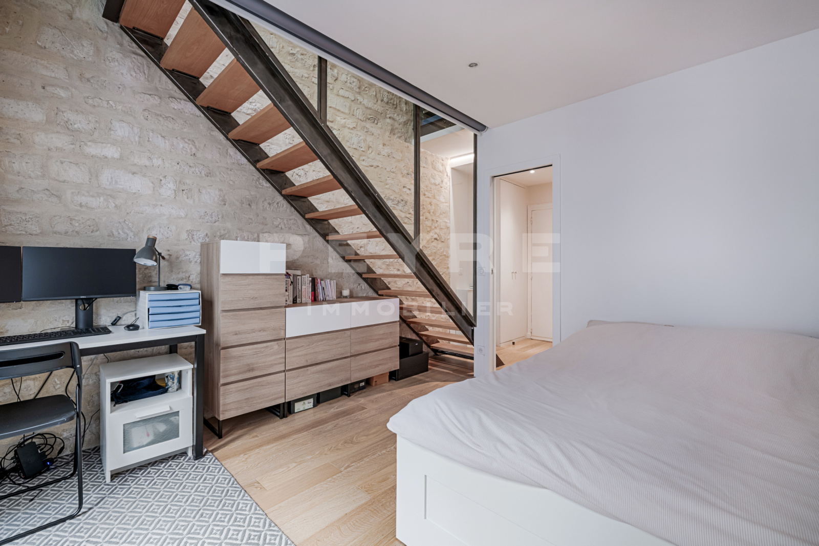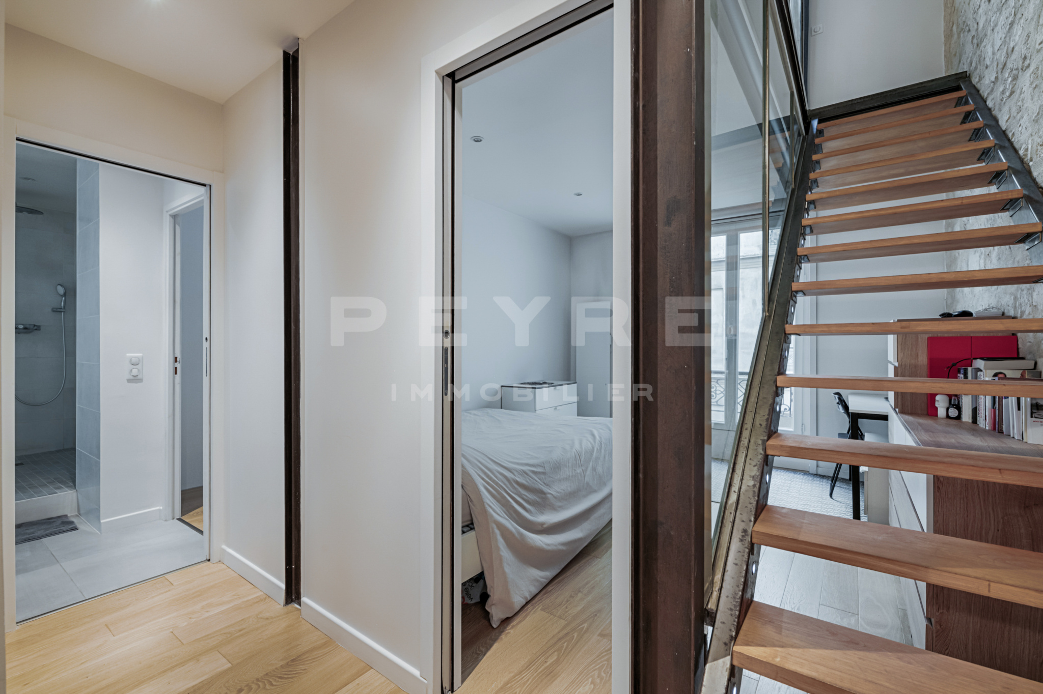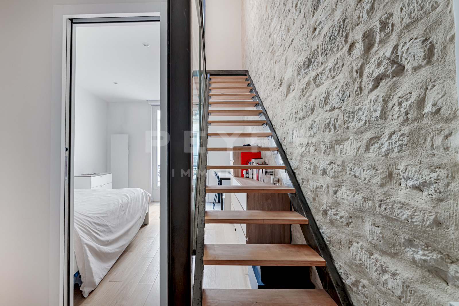 En très bon état. Sur cour, très calme. Emplacement très recherché. Atypique. Nombreux rangements. Télévision OLED. Enceintes SONOS.