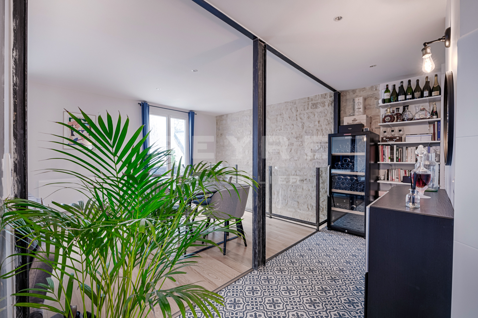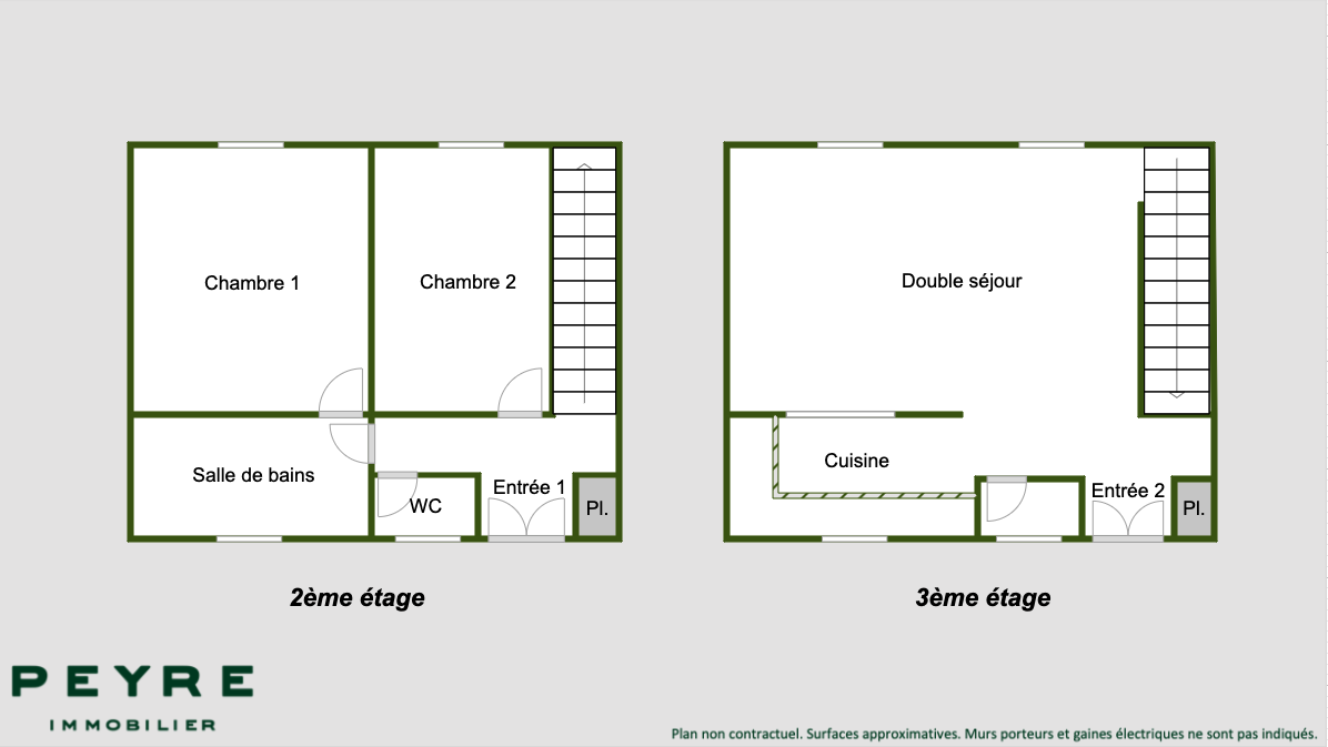 Au second niveau : Entrée, double séjour, cuisine ouverte aménagée et équipée et WC séparés.