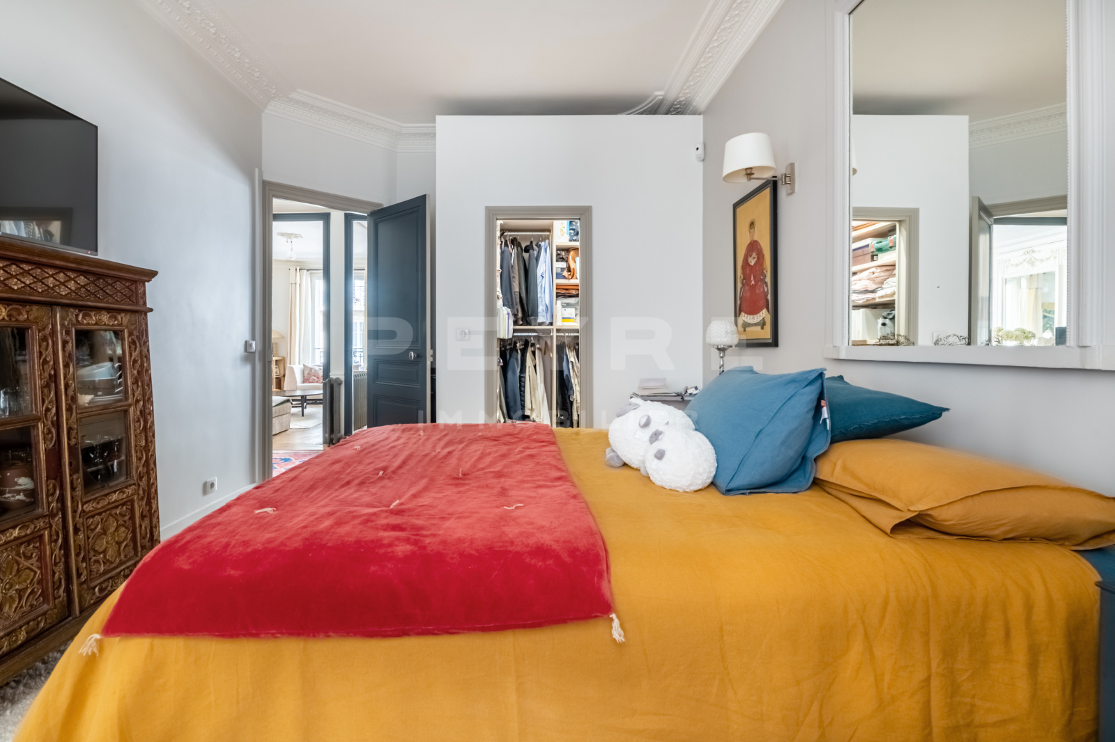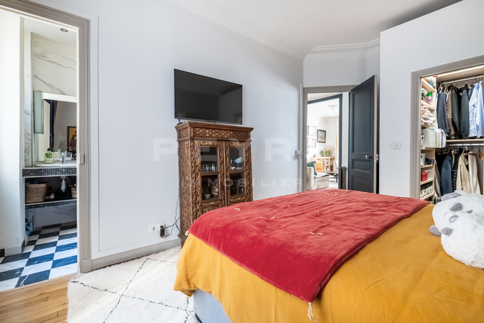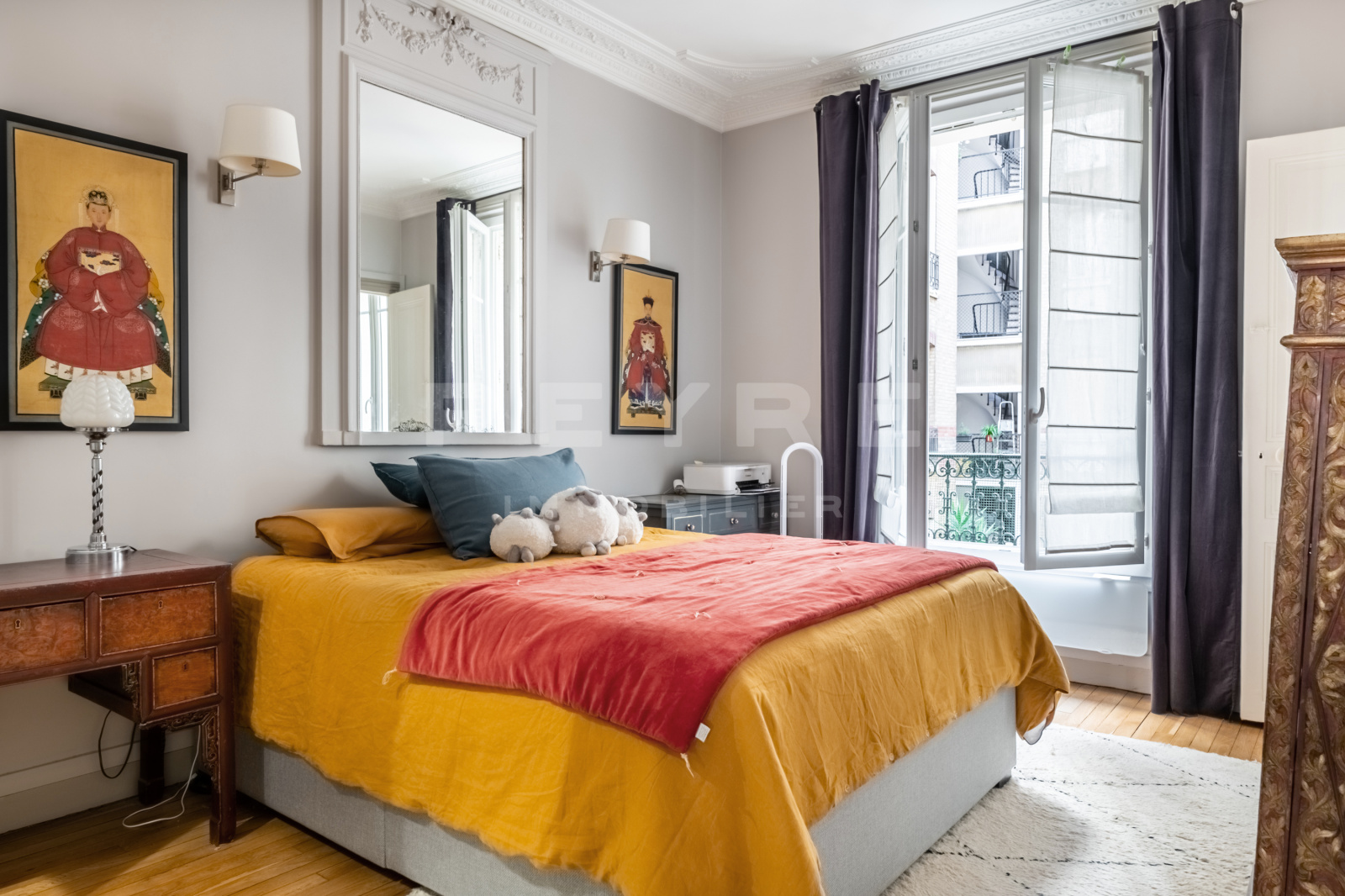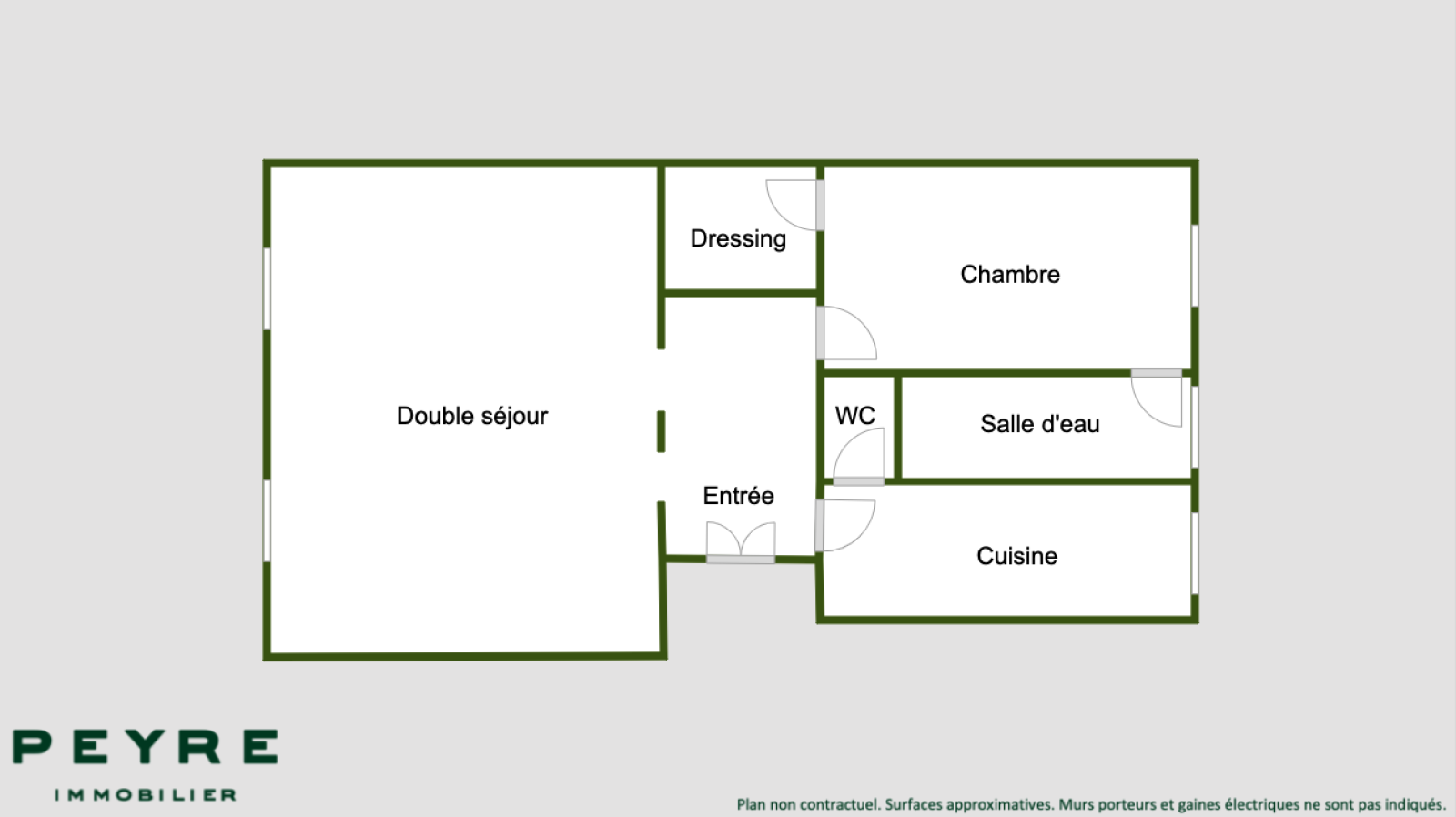 L’agencement est le suivant : entrée, double séjour sur rue, cuisine indépendante aménagée et équipée, chambre sur cour, salle d’eau, dressing et wc séparés.