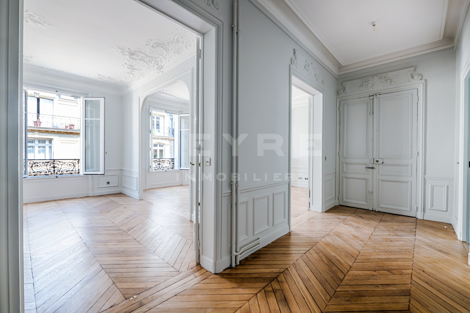 Appartement familial 6 pièces de 151 m2 (147,85 m2 « Carrez ») situé au 4ème étage avec ascenseur dans un immeuble Haussmannien d’excellent standing.